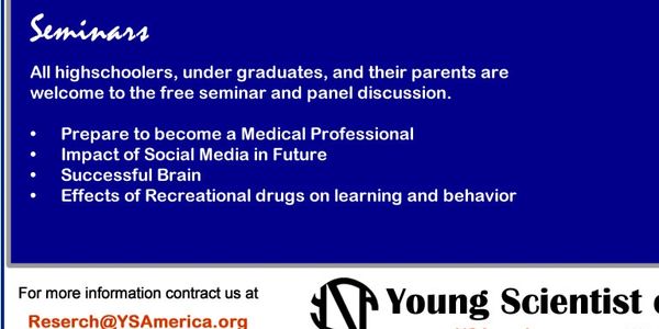 Young Scientist of America Invites High School senior and STEM college student to attend our monthly classes.